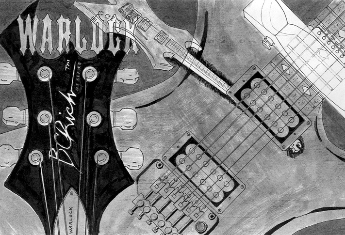 warlock a dramatic collage of BC Rich's most popular guitar in the hard rock world.